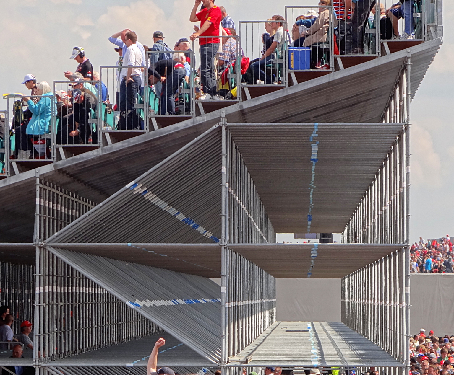 At Silverstone I was mainly struck initially by the friendly crowd atmosphere at the track. It seems that the british fans have a special family feeling to the sport. And during the race when the british drivers go by the atmosphere is particularly electric. Though normally a fairly pensive sort I, like others, definitely got carried away by Lewis Hamilton’s progress throughout the race, and at certain points found myself jumping to my feet and shouting myself hoarse as the whole crowd rose to cheer him along. Crowdthink perhaps, but harmless enough in this case and quite a fantastic feeling.