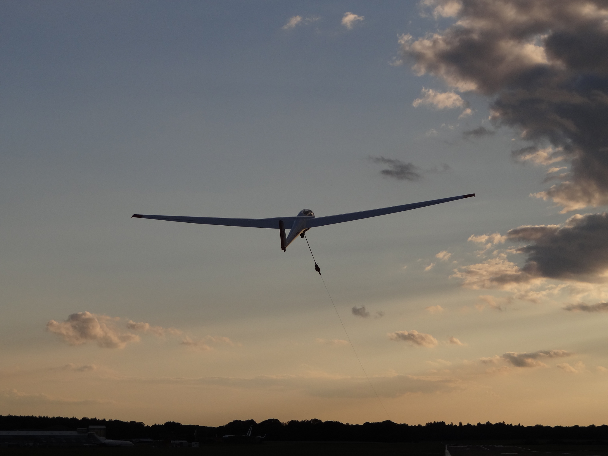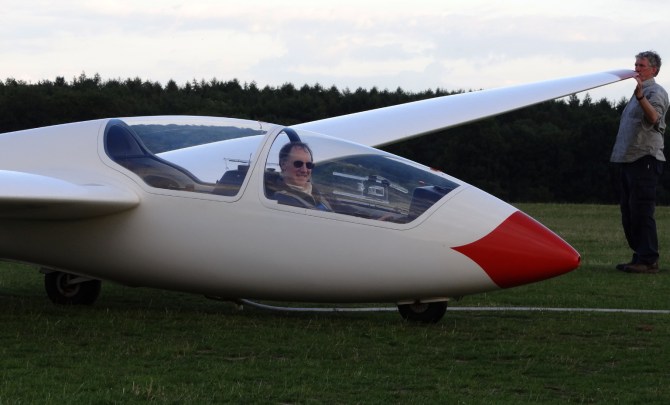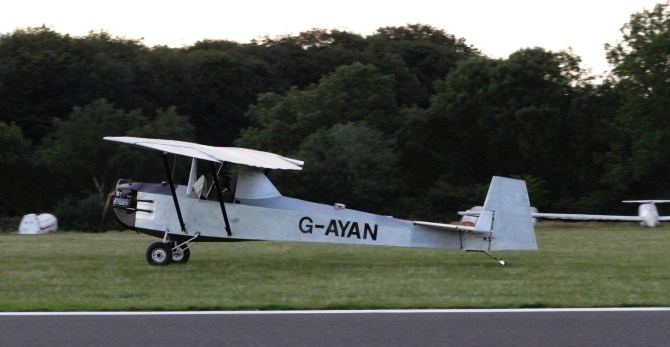 Later in the evening we had this following example of an old motor glider from the 60s. Basically a single seat Slingsby T31 with a VW 1600cc engine on the front. Cheap flying.