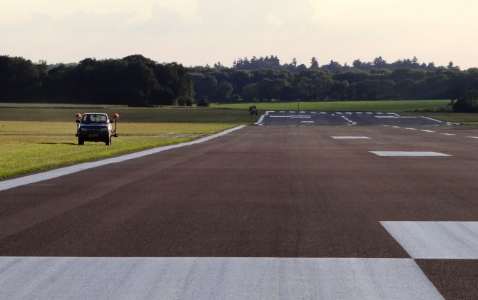 In this next shot you can see the “retrieve truck” with the two cables attached behind. If you zoom in and look carefully you can see where the cables are crossing the small runway behind the truck.