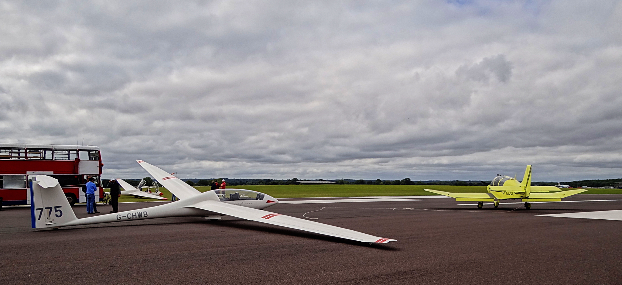 So there I was – I had the glider, the instructor was there, the tug plane was available, but the English weather was not cooperating. The cloudbase was too low at around 1500ft for an aerotow to be worth the money.