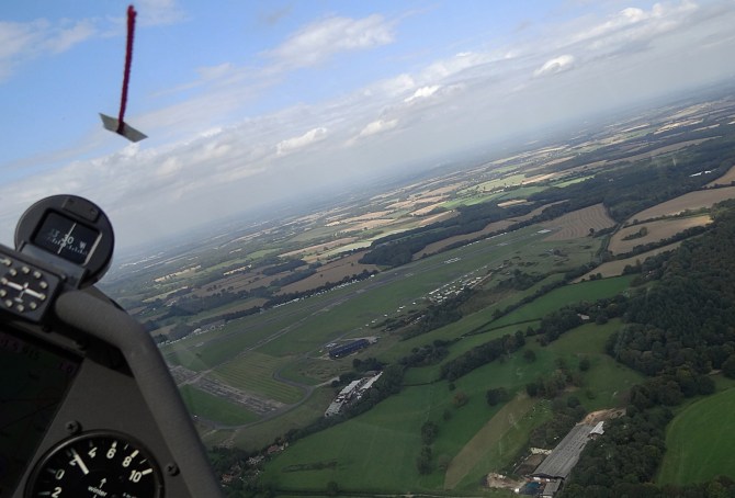 The time was now around 2pm and I was getting quite tired as it was proving to be a tussle to stay airborne. I flew around to the west of the airfield as I could see ground movement of the launch point as the operation moved onto runway 23. This coincided with hitting some really strong sinking air going down at 600ft per minute just as I was on the downwind leg of the circuit. I almost thought I would have to turn in early and land crosswind but luckily came out of the sink and found some lift and carried on to return to a normal landing.