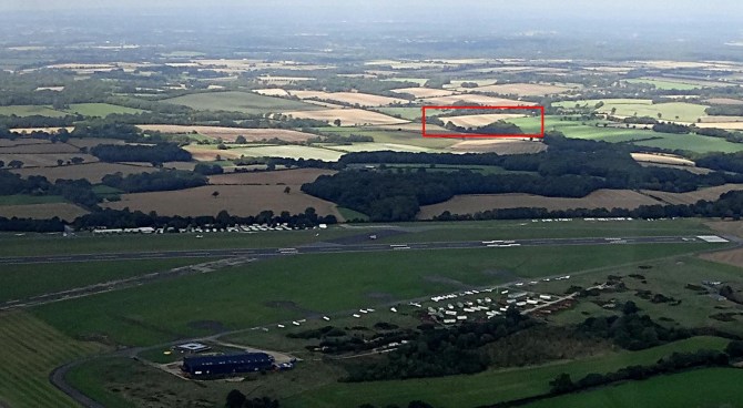Being on the north of the airfield allowed me to check a bit of theory about thermal formation. I had heard that one should look for places where you would get differential heating. I reckoned I could see one where there was a wood on the south side of a brown stubble field. I was hoping that the air just on the north of the wood would be sheltered from the wind, allowing a big enough bubble of warm air to form which would later get detached due to the windy conditions.