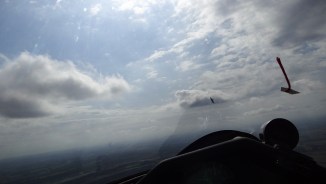 All was going fine and I was expecting, as planned, to take an aerotow next. But then at around 700ft on the downwind leg I got the most amazing kick up the pants as I hit a 4up thermal. I am afraid I could not resist it since (a) I knew I had enough height and (b) knew there was no-one else in the circuit. After just one turn I knew I had a good one and put the undercarriage back in its box.